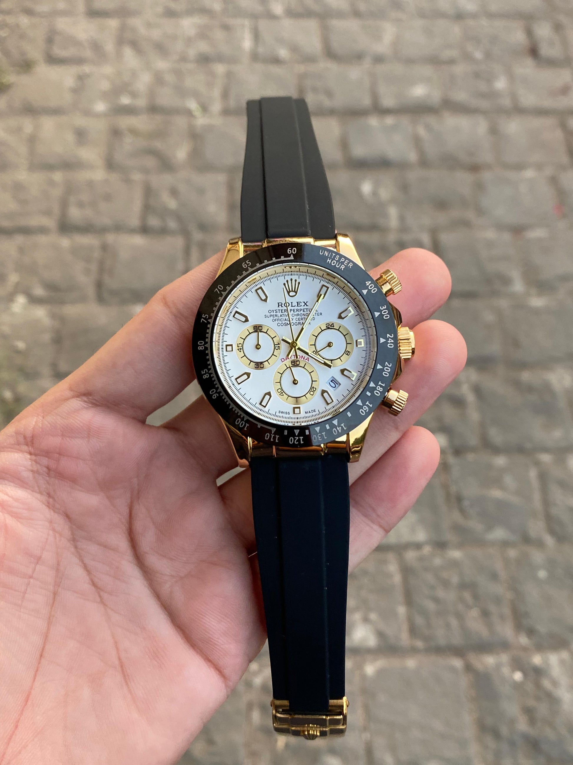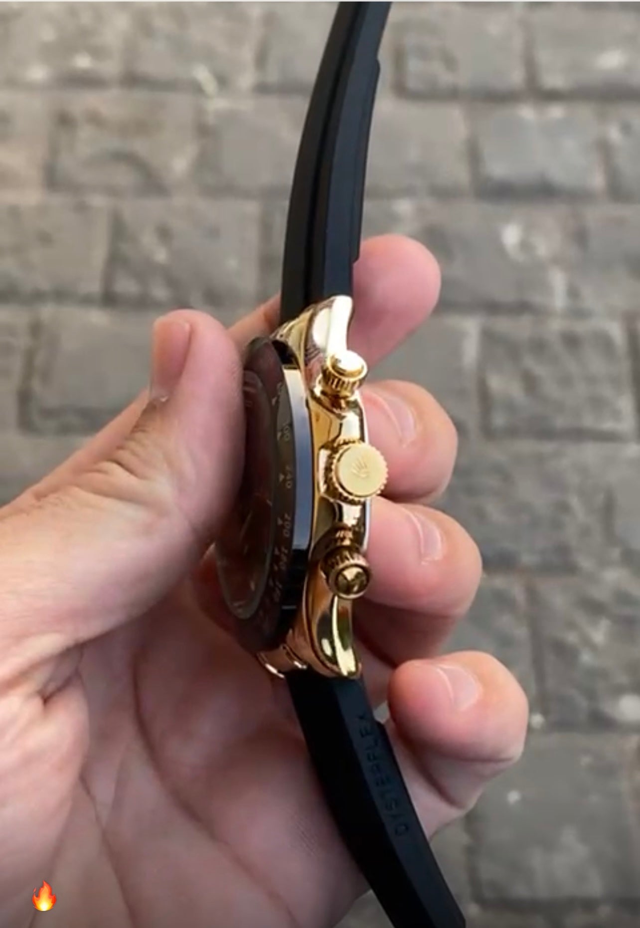 Black And Gold Case Silicon Strap Daytona Watch For Men