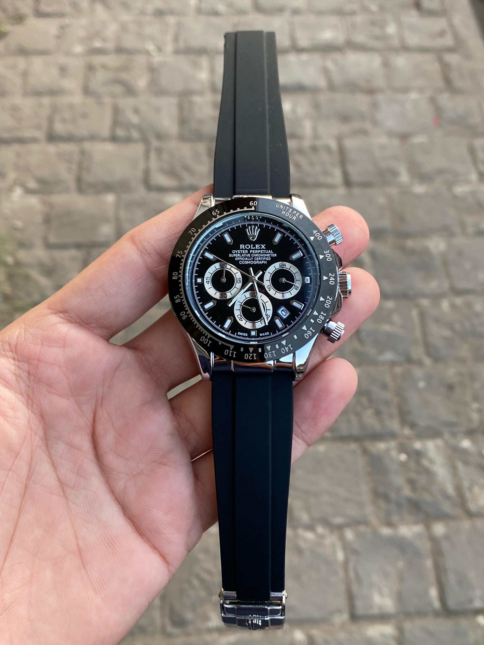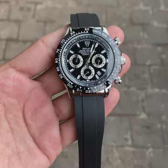 Black And Gold Case Silicon Strap Daytona Watch For Men