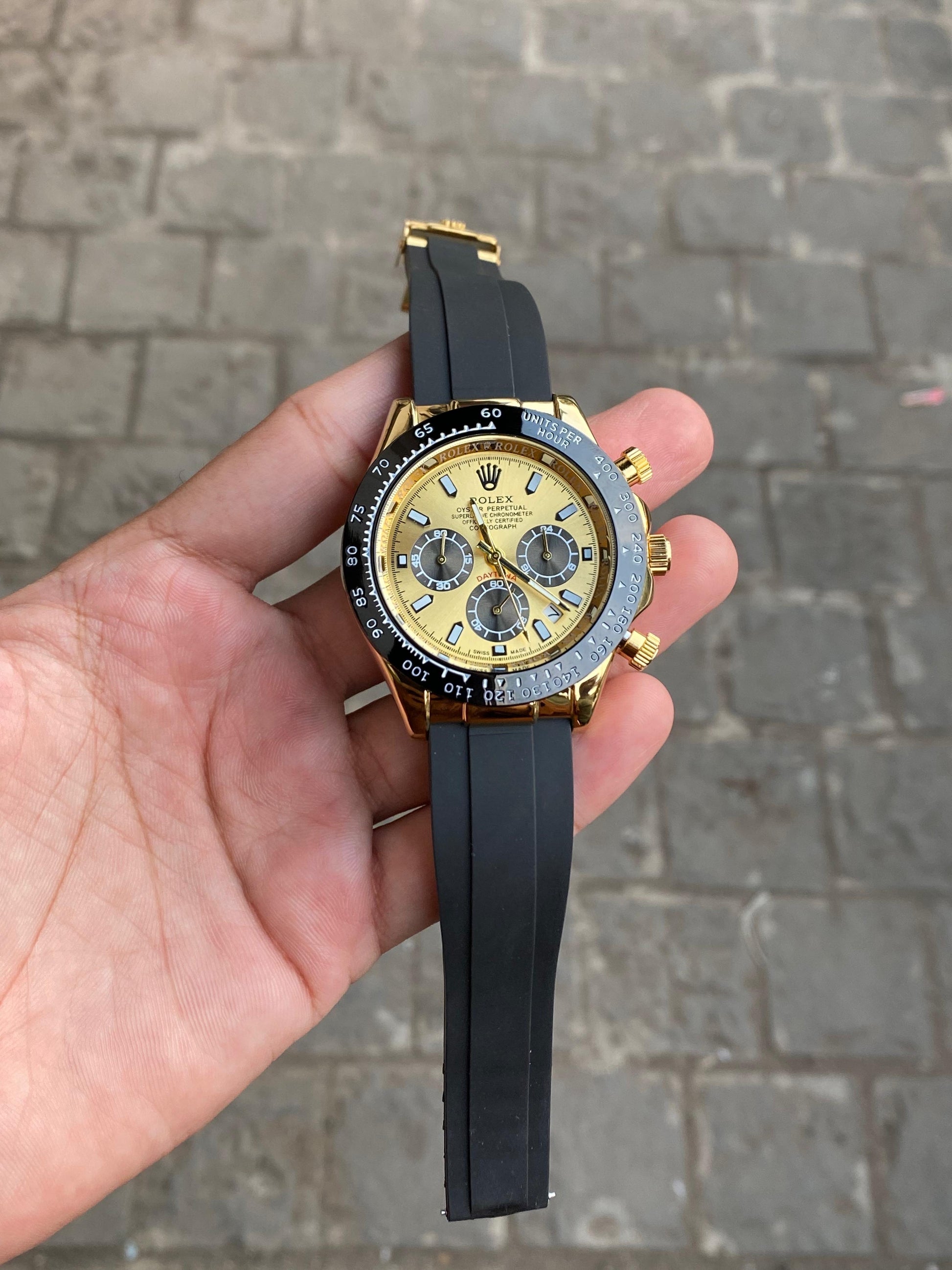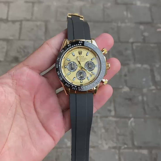 Black And Gold Case Silicon Strap Daytona Watch For Men