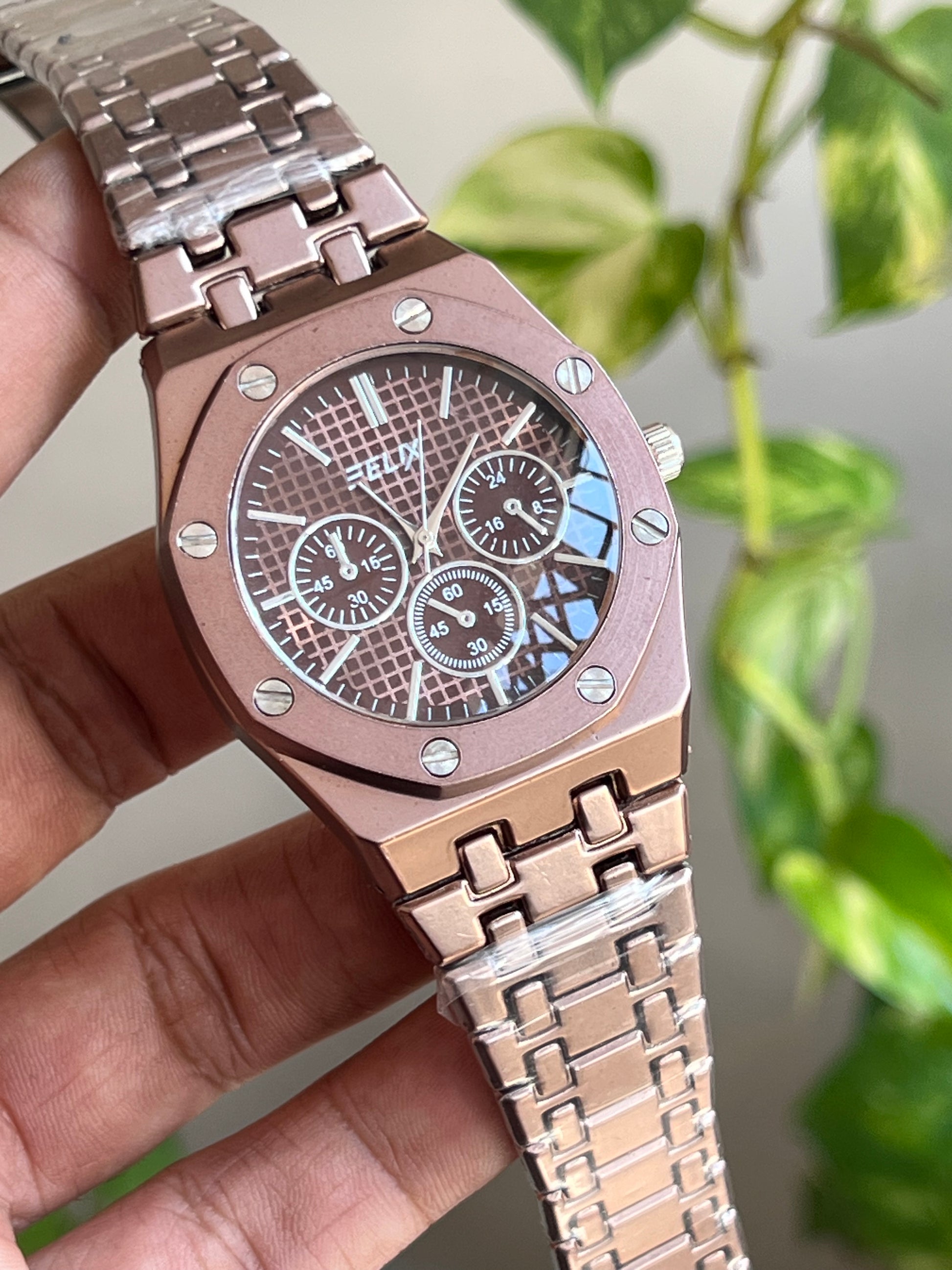 Rose Gold Plated Stainless Steel Straps Classic Analog Watch For Men