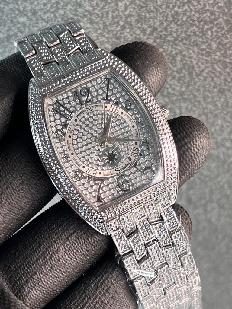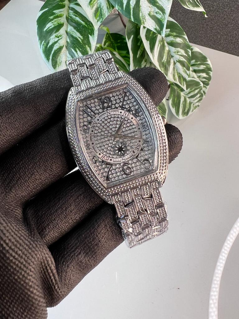 Silver Colour Square Dial Stone Embedded Analog Watch For Men